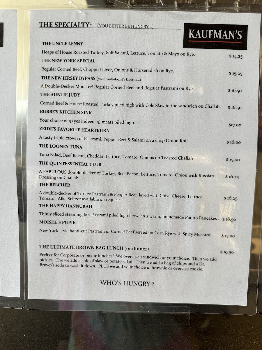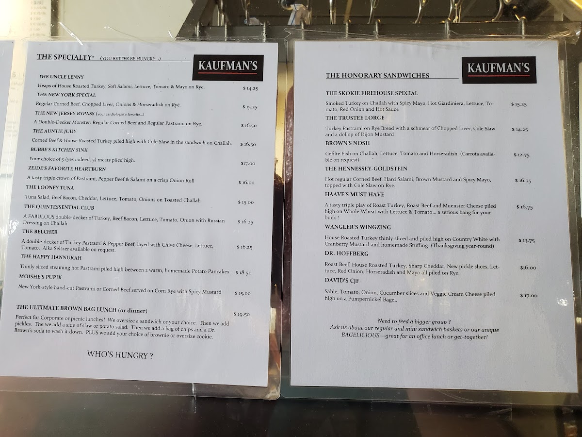Kaufman's Bagel & Delicatessen Menu